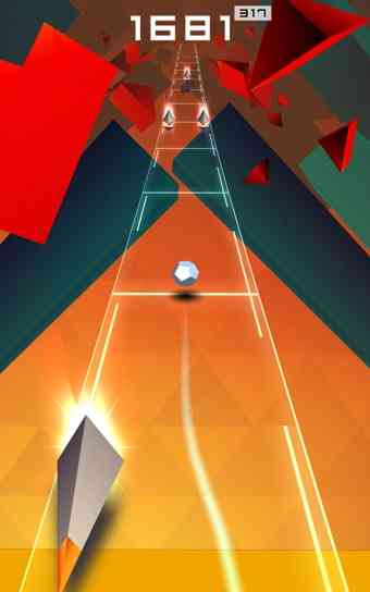 悬浮的隐形跑道、全开放式的空间以及各种几何体的点缀,既是这款游戏的特色也是难点所在。游戏的主角是一个球形的多面体, 与大多以人为主角的跑酷游戏不同,这颗多面体可不是那么好掌控的,主要原因是它会蹦跳着前进。