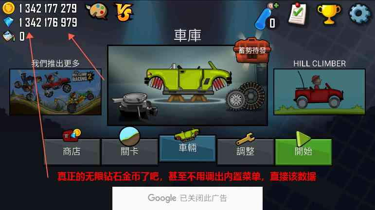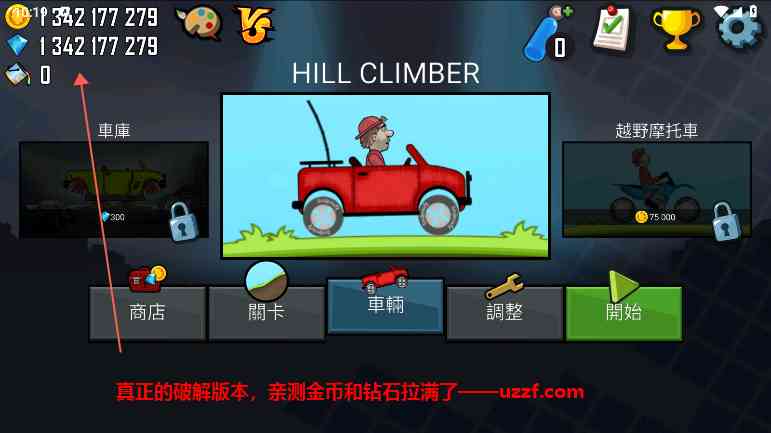 1、 登山赛车里面有两个游戏模式,一是比赛模式,随机排3个人,一起跑。还有一种自己用金币解锁冒险地图,冒险模式,一人跑。