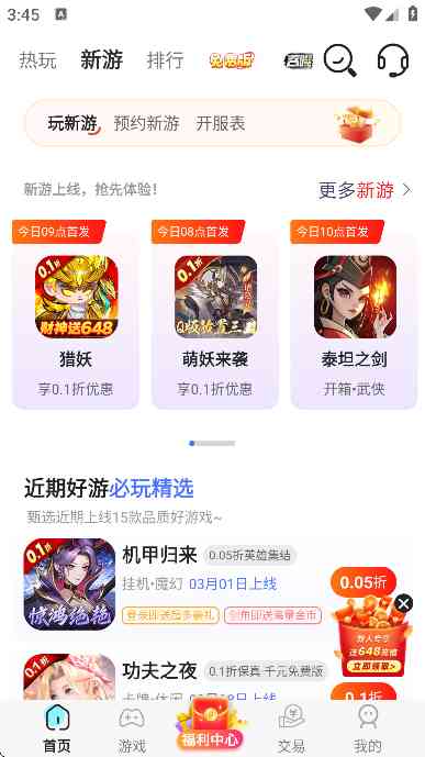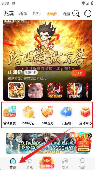 3、来到首页,如图所示。平台为大家提供了诸多福利礼包和首充活动。