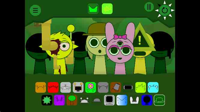 1、节奏盒子Sprunki绿核模组为玩家提供了一个奇趣且出色的声音库。