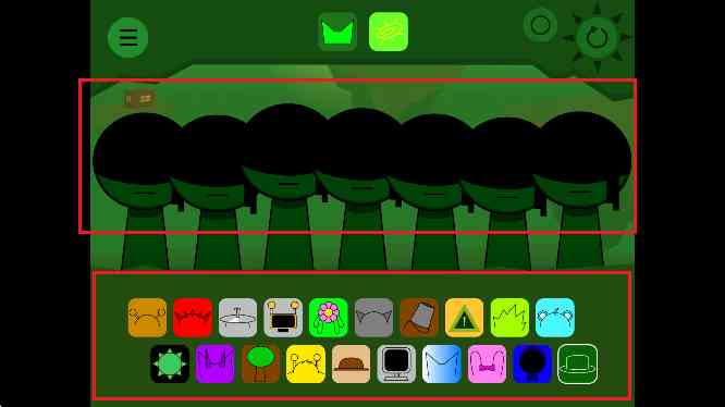 1、 进入游戏,屏幕下方那一排整齐排列的道具便是你创作音乐的“魔法棒”。