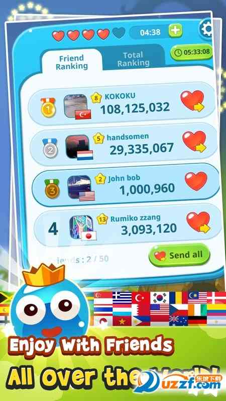 PongkyPungky Puzzle手游还支持好友互动和排名竞技。玩家可以邀请自己的好友一起玩游戏,互相竞争,共同进步。一边,游戏的排名系统也让玩家有了更高的追求,不断挑战自我,成为好友圈中的佼佼者,好吧好吧...。