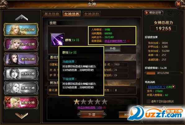 我跪了。 女神的升星可让主角属性和女神伤害输出能力得到加成!
