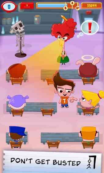 脑子呢? 游戏当然也设置了一些元素来丰富游戏性, 老师就是你的死敌,他会定期像探照灯一样,来监视教室,被他的“死亡光线”扫到,你就被发现了那游戏也就相应的结束了。玩家要在老师发现之前, 尽快的作弊,然后回到自己的位置上,去抄袭不同的同学,这一切都是有时间限制的,所以要讲求技巧,快、准、狠的完成作弊。
