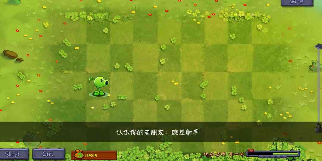 2、放置植物,过新手教程,获得向日葵;