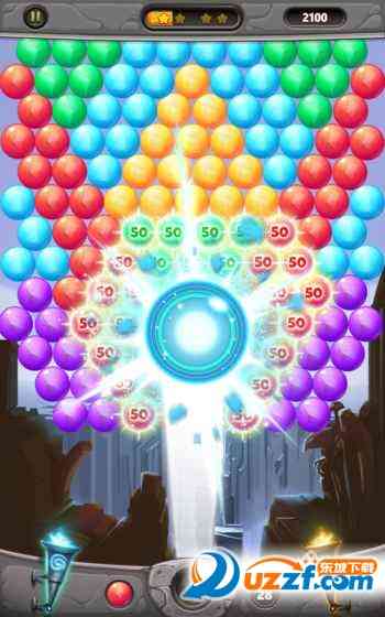 - 点击屏幕拖动激光瞄准,并将其提起以粉碎气泡。