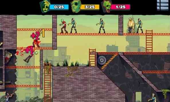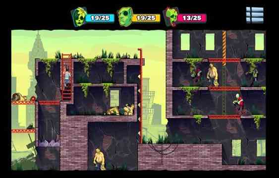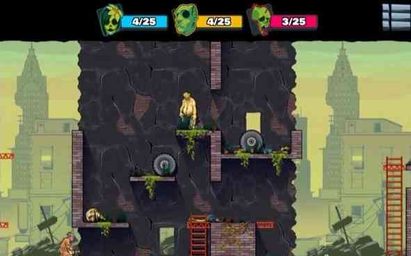 我狂喜。 《愚蠢的僵尸3修改版 Stupid Zombies 3》是一款非常有意思的射击游戏, 你只需通过点击屏幕一侧手枪进行瞄准,确定轨道后放开就发射子弹,子弹会顺着轨道一路弹射杀死经过的僵尸们,但是若在限定的子弹数里面还没杀完僵尸,那么则判定失败。与前两代相比, 《愚蠢的僵尸3 Stupid Zombies 3》亮点在于,你除了可以直接向僵尸发射子弹外还可以通过打击物体碰撞来解救。