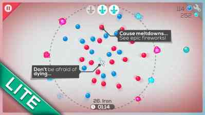 好赞的创意, 将微观世界完全展现在玩家面前,每个关卡都是元素周期表的一个元素,通过不停地吞吃中子和电子从氢元素开始不停进化。忘记中子、质子、电子如何构成原子的同学请自行面壁。