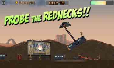 啥玩意儿? 里面你需要扮演邪恶的外星人, 驾驶一架宇宙飞船,深处一个可伸缩的爪来控制和消灭弱小的人类和地球生物。这是一款重力感应控制的游戏, 你的任务就是控制一架飞船不断的在地球上空巡逻,然后看到地面上的人或者是动物,就点击屏幕,伸出爪子,将它们抓到飞船中来。
