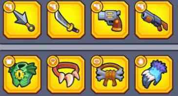 1、黄框武器推荐喷子,红框推荐苦无和球棒