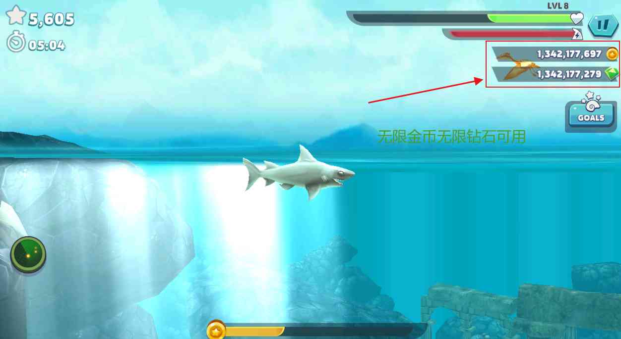 3、持续升级你的鲨鱼,支持一些特殊的道具,一步一步解锁更多水下凶猛野兽,扎心了...。