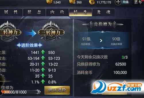 4.可消耗等级经验转化为转生修为。