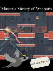 《双面绅士》的玩法非常直接, 当一方杀死对方四次后便会获得胜利,每一次击杀都会有一个非常酷的骷髅头动画提示。游戏有一个非常有意思的设定, 双方的攻击方式并不相同,一方使用炸弹,另一方使用双向飞刀,相信开发团队也是为了做出差异性才会为游戏添加了这种设定,不同的攻击方式需要玩家用不同的战术接近敌人,并且掌握好自身攻击方式的轨迹,胡乱扔技能只有被杀的份儿,各位可以回家试一下这是一款绝对值得一玩的对战类游戏,探探路。。