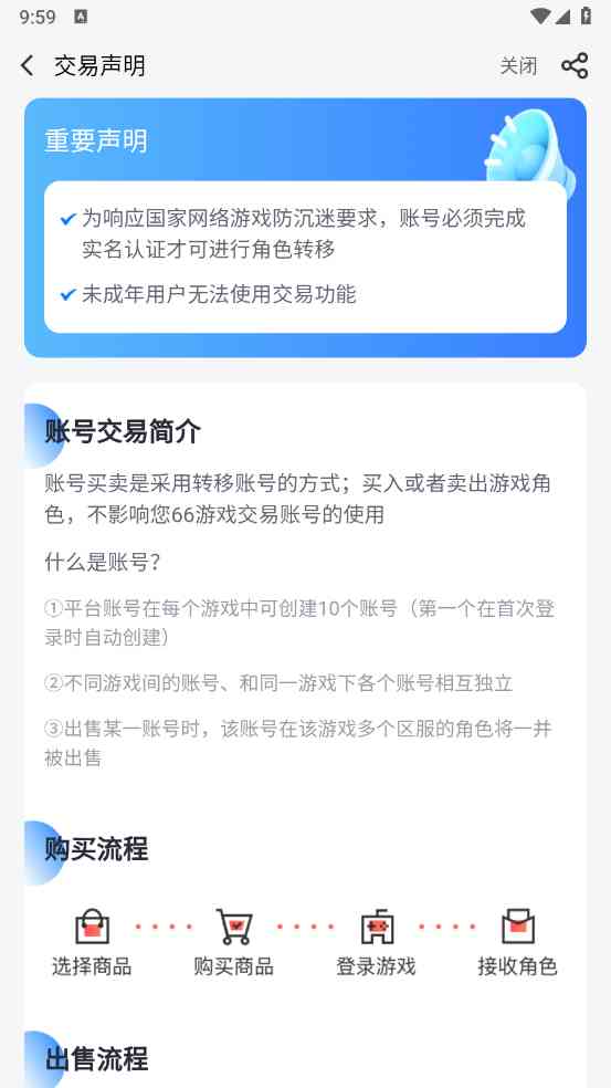 66游戏交易APP是一款能为用户提供高剂量, 高保障的游戏交易服务的应用程序,在66上,支持游戏账号购买,出售等。而且在这里进行账号交易必须完成实名认证禁止未成年人交易, 防范未成年沉迷,很大程度上保障了交易的平安性。接下来这里覆盖了海量的游戏账号,支持热门游戏,让你交易账号更加高效,使用起来非常简单,快来下载吧!