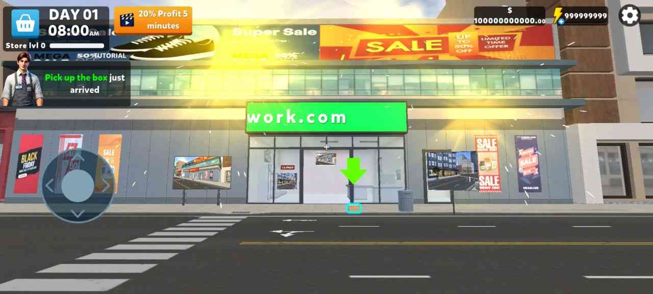 游戏一开始,你被带到市中心的一家小超市。虽然是超市,但在我看来它和便利店一样小。在这里你开始以老板和员工的身份开店。凭借游戏提供的少量资金,你必须计算如何让它们盈利。当你赚到很多钱后就到了升级商店的时候了。升级商店后你会进口更多商品。时间流逝,总有一天你的商店会成为城市中最大的连锁超市,胡诌。。