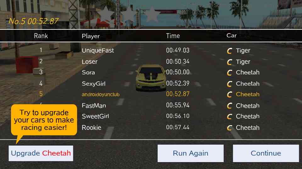 记得升级你的酷车。你们将在争夺冠军的比赛中处于不可战胜的领先地位。