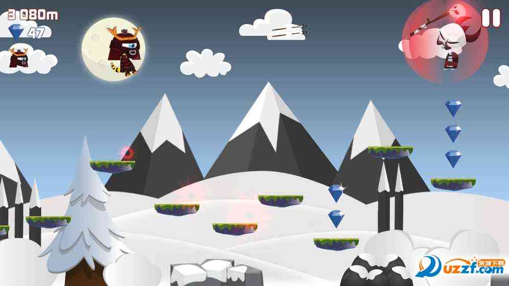 2、点击屏幕左边,忍者可以跳起来