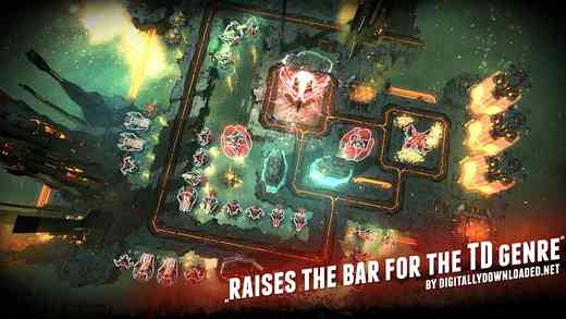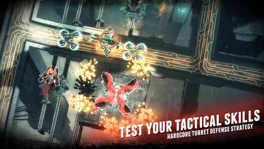 2. **传统塔防玩法**:玩过前作的朋友对本作大概要失望了 既然回归了传统,那么玩法就和传统的塔防游戏并无太大的不同。全程触控的模式,玩家必须在敌人的前进路线上建造防御设施,防止敌人消灭自己的逃生舱。每一个放置点只能生产一个单位,而高级单位则需要占用两到三个放置点, 吃瓜。 也就是无法相邻。放置好防御塔之后就可以点击开始等待敌人的汹涌进攻了。而且自带快进功能。需要注意的只是有的关卡会出现两条或者多条进攻路线, 而且进入阵地的敌人有时还会突然转向,这些都需要玩家好好把控好。