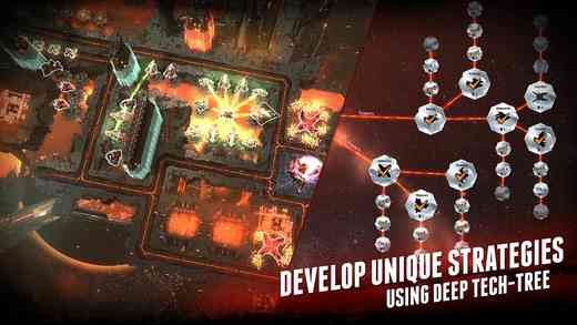 2. **关卡难度与科技树**:游戏关卡有三个难度, 容易、普通、困难,不同的难度都可以获得相应的升级点。利用庞大的科技树上,开发新兵种,提高血量等等。还有防护盾、维修、辅助、资源四大类的相关分支,科技树可以随时进行重置,返还之前的点数。本作共有八种不同的外星高科技防御塔供玩家进行升级,未来可期。。