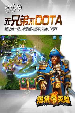 《燃烧的英雄》是一款以dota为题材的“”手游。在传统的ARPG中真正意义上的加入了卡牌手游的元素, 独创的“丢卡”玩法真正让“APRG+卡牌”手游不再只是拥有卡牌的养成体验,而是在游戏中体验自由战斗带来的超凡感受,还可运用各种卡牌在战斗中招募英雄提升能力。各式各样的英雄搭配, 能带来不同凡响的连招效果,“combo丢卡”的乐趣融入战斗中,让战斗进程充满无限的可能,性价比超高。!