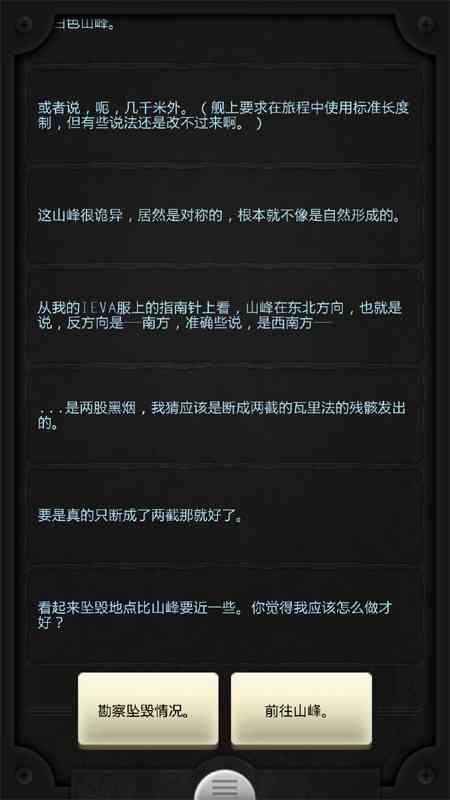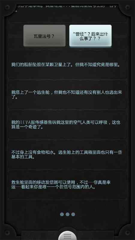 汉化版终于等来了激动。前面在英文版时我们说了这是一个以文字叙述冒险为主要玩法的游戏,胜在科幻片一般的剧情。泰勒的飞船坠毁,通过无线电跟你联络,你需要指导他的行动,为了生存展开冒险故事。