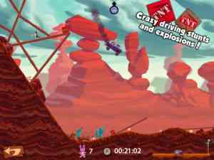 2、游戏的操作为触屏加重力的形式,按住左侧屏幕是倒车,右侧屏幕则是前进。左右晃动iPhone/iPod touch则是控制卡车车身的平衡。整体的操作十分简单易懂,但是实际进行的时候,则是充满了各种挑战。关卡内会有各种斜坡、凹地、岩石、加速飞跃用的跳板、落差台,甚至是直接摆在路上一碰就爆炸的TNT,何不...。