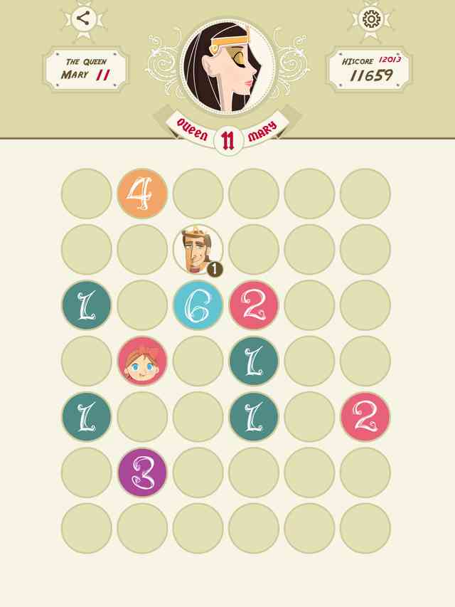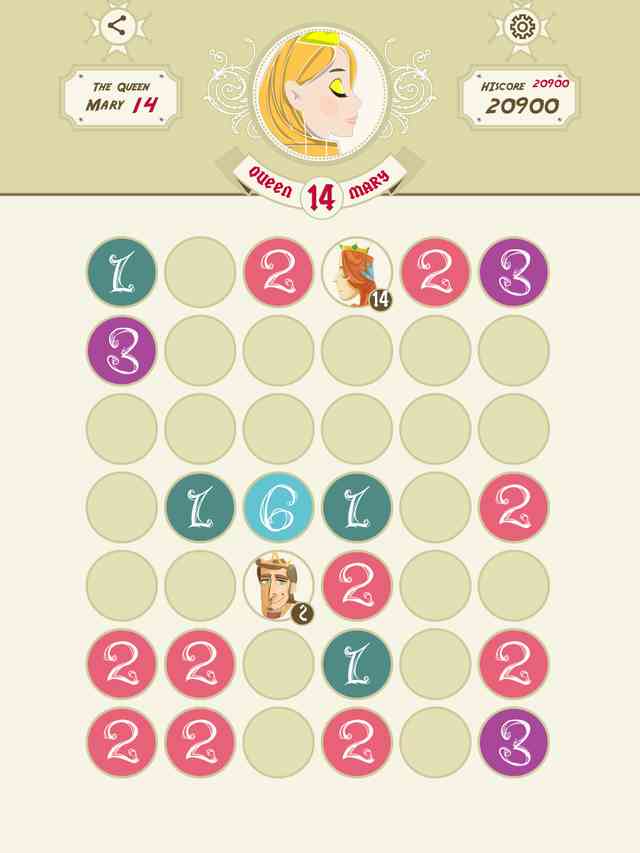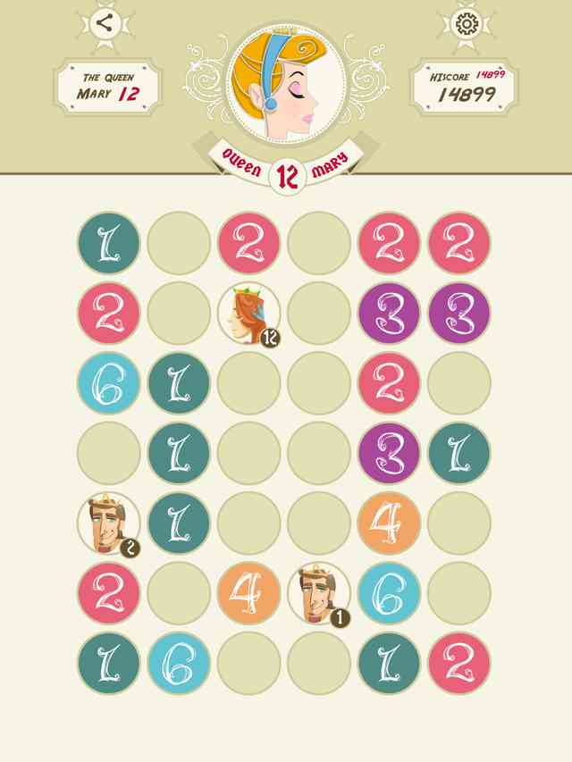 3、 虽然每动一步地图上就会随机出现一些新数字,但消失。当玛丽十世降生时 游戏地图会完成一次复位,几乎所有小于3的数字都会消失,所以呢这款游戏并不是玩到十世就算结束,我们的目标是挑战自己的合并消除极限。 太坑了。 虽说本作画风唯美,且规则在三局之后就能基本掌握,但要精通连续成长的门道还是很难的。特别是眼睁睁看着国王和王后已经就位,中间却有障碍时一定要冷静应对。