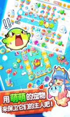 1、 本作采用了塔防游戏玩法,玩家将宠物作为防御塔加入战斗,你会看到酷炫宠物技能。呆萌的火焰龟会造成群体伤害, 风精灵可以穿透敌人凶狠的旋风攻击, 准确地说... 骷髅鱼发射带毒的鱼骨,美人鱼抛射爱心使敌人眩晕,还有炸弹贝,炸弹鲨,泡泡鱼,针刺鱼,乌贼娘等大展身手……
