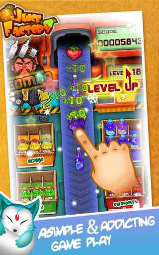 1、 游戏场景设置在一个果汁工厂的流水线上,你需要将新鲜果汁分门别类装箱。因为关卡的推进,游戏难度逐渐增加。只需用一只手指就能操作游戏,让你在休闲之余轻松度过美好时光,总结一下。。