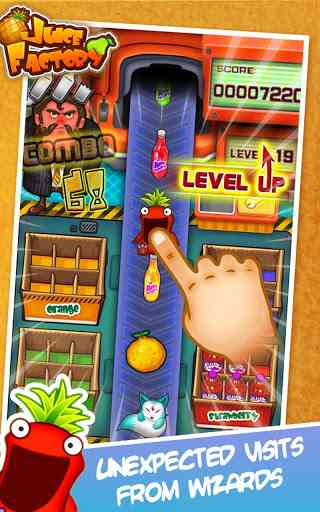 在这个游戏中, 你将进入一个装配生产线滚动的世界,灯闪烁,果汁瓶和新鲜水果从生产线上源源不断地出现。你的任务是尽可能多地制作果汁,将它们放入榨汁机中,然后将瓶装果汁顺利运出工厂。
