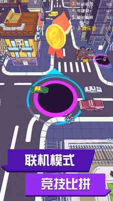 拖动手指控制你的黑洞, 不断吸收更多元素,扩张黑洞,在规定的时间之内,淘汰其他对手,分数最高的幸存者获胜,说白了就是...!