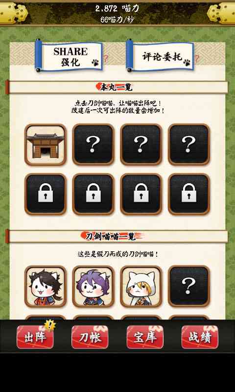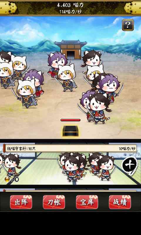 喜欢玩日式游戏的朋友应该都玩过《刀剑乱舞》吧, 今天东坡小编带来它的衍生作品——《刀剑喵舞安卓汉化版》来了它是专为审神者们量身打造的放置型游戏。游戏已完整汉化,再也不用担心文字的烦恼,奥利给!。