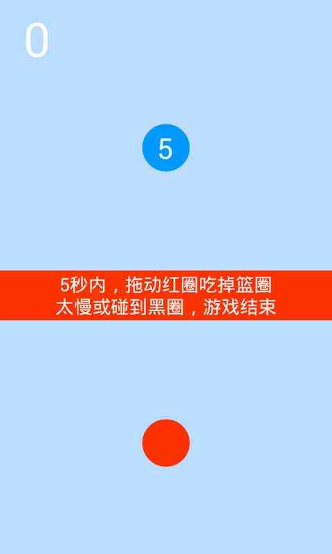 大体上... 五秒你行吗游戏是一款测试和锻炼玩法反应速度的游戏,反应速度和灵敏度的双重考验!!!玩家需要拖动中间的红球,在篮球的时间为0前,吃掉它,一边需躲避越来越多的黑球。越快吃掉篮球,加分越多,不过可能你连躲黑球都顾不上了。