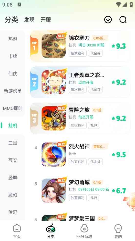 3、 游戏分类中一般会有详细的游戏分类,热游、卡牌、仙侠、新游榜单、MMO即时、挂机、三国、写实、竖屏、魔幻、传奇等类型。您可以根据自己的喜好,点击相应的分类来查找感兴趣的游戏,我傻了。。