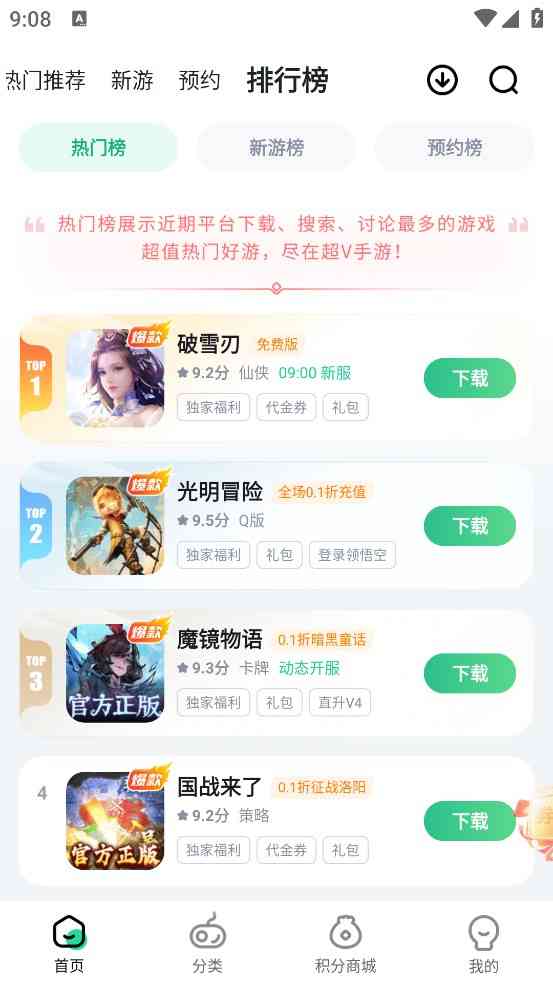 超V手游APP真的是福利满满哦, 百款热门手游轻松下载,丰富的游戏资源推荐给你,在这里找到很多优质的游戏,超多火爆的游戏在这里一网打尽!而且首充648低至1元, 更有专属礼包游戏代金券省钱卡道具奖励游戏周边通通带回家,所以感兴趣的朋友可以下载体验体验哦,别纠结...。