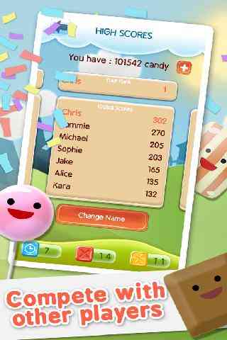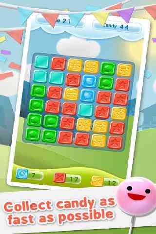《糖果飞溅 Candy Splash》是一款有趣的消除游戏。这是一款画风清新可爱的美味消除游戏, 玩家点击相同颜色的糖果就可以消除他们,一次消除糖果的数量超过6枚,你会获得双倍的分数。但是需要注意的是不要去点击不成组的糖果,否则他们会爆炸。游戏中,还会有三个超级糖果,会为你带来更多的分数,有助于提升你在排行榜上的位置。在游戏中,你获得的分数,可以和全世界的玩家一争高下和朋友在线对战,都大大增加了游戏的可玩性。