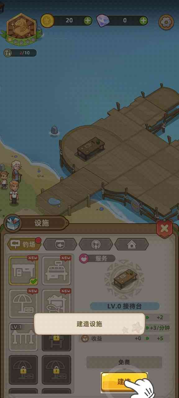 2、根据提示建立开启自己的钓鱼场,往里面放鱼;