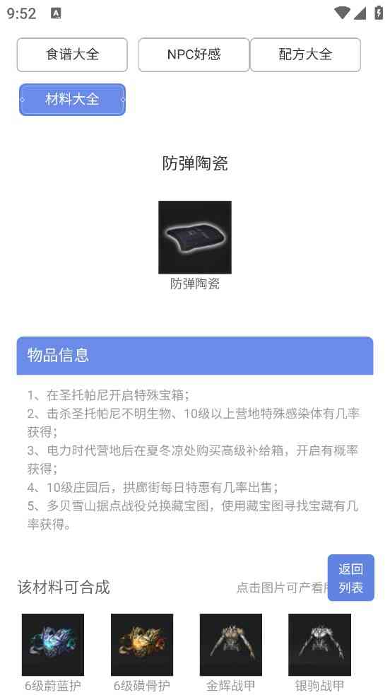 3、 包含了游戏中可采集的各种食材信息,通过食材图鉴,你可以了解食材的获取途径、用途以及可制作的食物种类等,YYDS!。