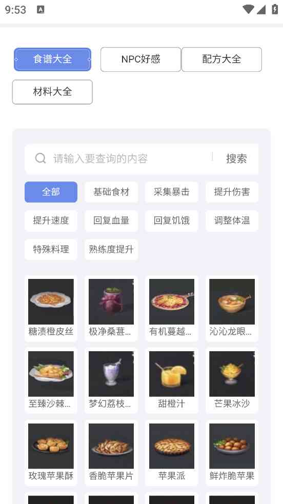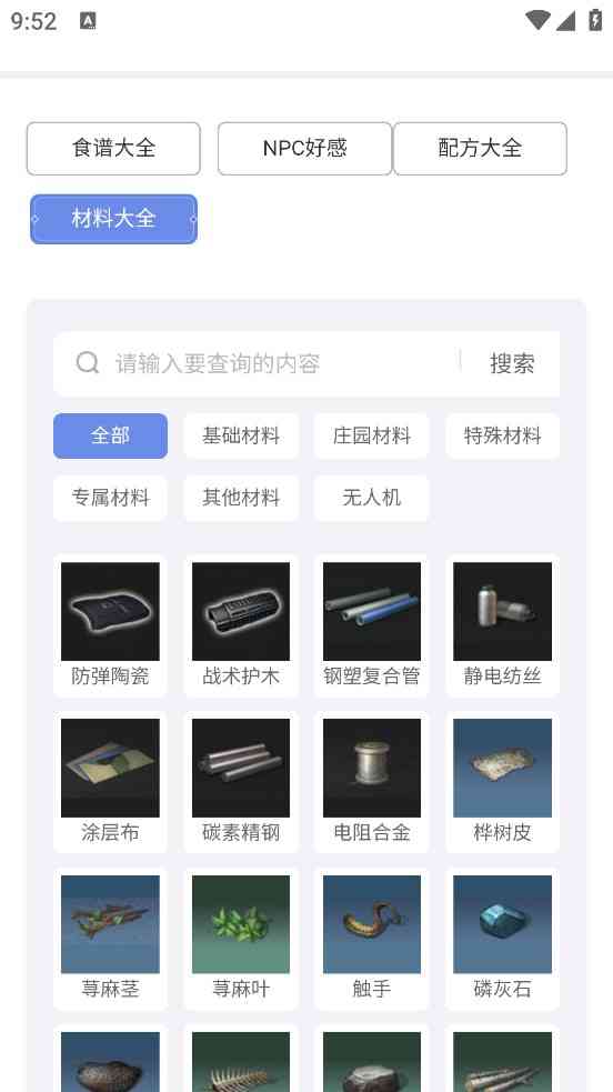 明日之后图鉴工具手机版还是蛮好用的, 主要原因是它先说说是完全免费的,所以在这里各位玩家在这里查询任意的内容,收录了游戏里的个汇总推荐, 公正地讲... 比如食谱以及材料等,还有NPC的图鉴也是可以查看的,让大家直接在主页上进行筛选,也可以直接搜索关键词查询。