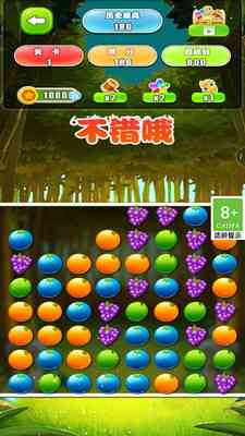 2、 游戏包含多个关卡,每个关卡都有不同的任务目标,比方说在规定的步数内消除特定数量或种类的水果, 拉倒吧... 或者达到一定的分数等。