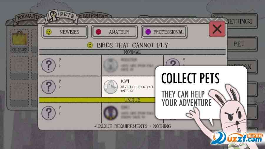 又爱又恨。 兔子特工是一款角色冒险类游戏, 游戏中玩家需要帮助可爱的粉红兔子找到爷爷,游戏中含有多种玩法,紧凑的故事情节,能让玩家边游戏边了解故事,游戏分为3种难度玩家可以选择自己喜欢的关卡进行挑战。