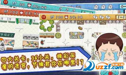 《节操丢了》分为屌丝之家、 歪扭学校、危楼宿舍、神经职场四大关,共36个小关。 你需要根据地图上的箭头指引,选择行动方向,并巧妙地避开各种陷阱和机关,到头来到达迷宫指定出口后过关,太硬核了。。