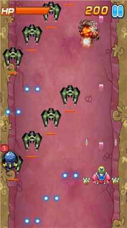 游戏画面绚丽,精彩刺激体验,玩家简单易上手,道具丰富,搭配不同的僚机作战,带着你的战机出发战斗吧!