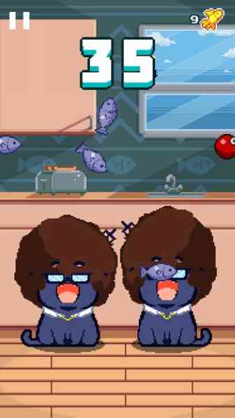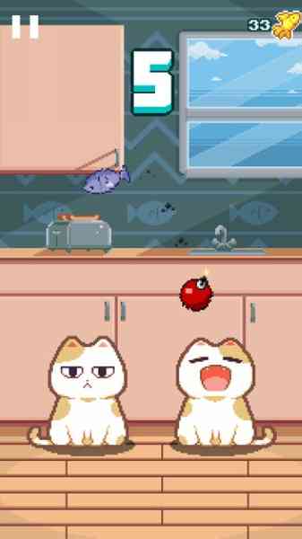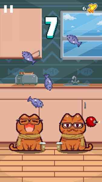2. 玩家只需控制一个猫咪可能觉得很简单,但屏幕中可是有两只小猫咪呢。玩家每次都要一边控制两只小猫来接住小鱼干, 提到这个... 所以玩家不仅观察能力要好,再说一个的反应能力也要非常快,不然小鱼干掉到地上小猫可是会哭的。