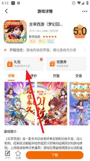 这事儿我得说道说道。 3、 来到游戏详情界面之后就可以直接如上图所示点击礼包领取奖励啦,还有优惠券可以领。