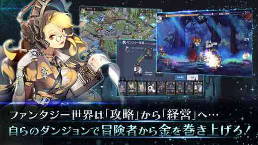 据官方表示, 本作为一款让玩家们化身为幻想异世界的迷宫管理者,并将前来迷宫探索的冒险者给设法一一击败,从他们身上夺取金钱来成为亿万富翁的 24 小时迷宫经营管理策略游戏。游戏中最大特色, 就在于将会搭载独特的迷宫管理系统,玩家们可以自由在迷宫里配置自己抓到的怪物,并让迷宫不断进化,借此吸引更多冒险者们前来探险,上手。!