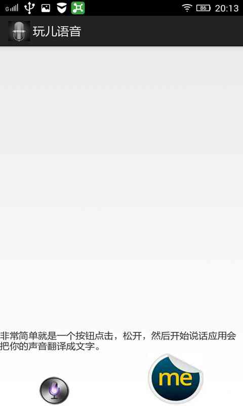 玩儿语音是一款简单实用的语音录音软件, 软件简单实用界面简洁,操作简单只要点击就可以开始说话,应用会自动将听到的话即时显示出来,这东西...。