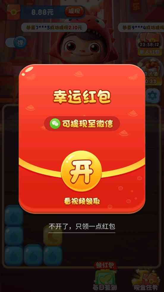 3.玩家不仅可以挑战关卡,还能领取丰厚的红包奖励,让游戏更具吸引力。