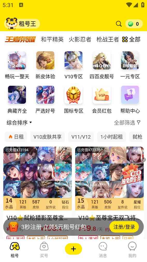 1、注册和登录:玩家先说说需要在最新版本的租号王上注册并登录帐户。