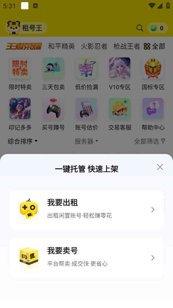 说白了就是... 租号王APP是一个高质量的游戏账号交易平台, 在租号王APP上你既可以出售自己的游戏账号,也可以租赁其他的高质量高等级账号。其中也包含了全网各个热门游戏的账号资源, 并且还可以直接参与平台的活动,让你在这里可以享受更多的租号优惠。如果你租用的账号即将下线,你可以通过软件快速的进行账号续租操作。